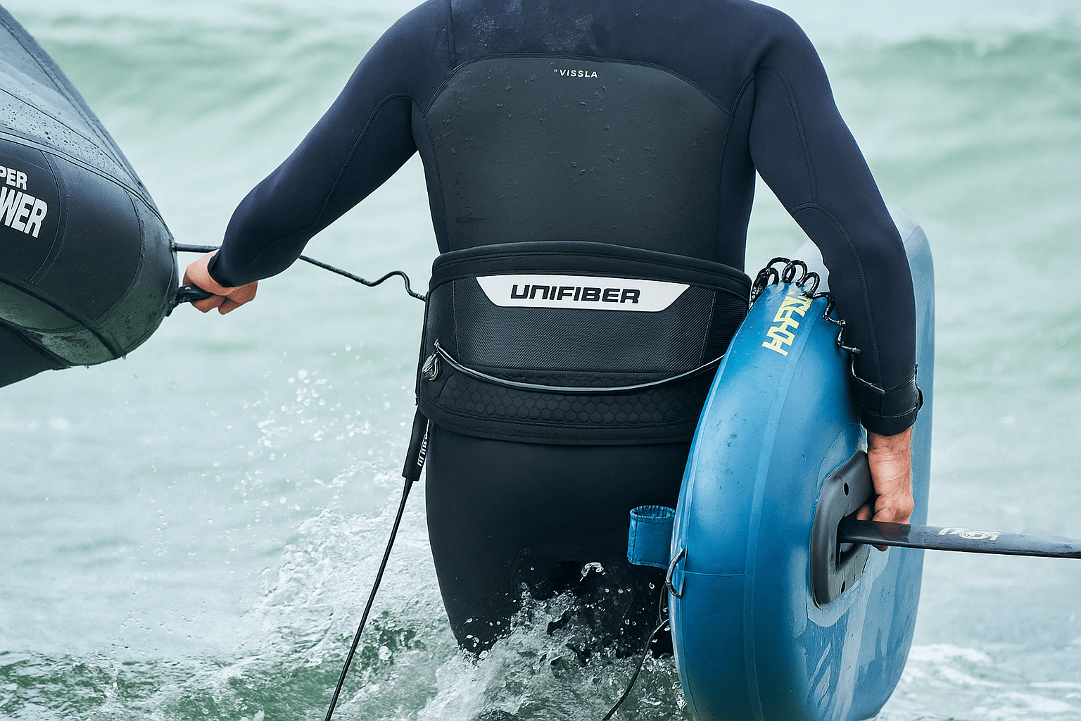 Trapéz na wingfoiling je speciální pás, který se nosí kolem pasu a slouží k uchycení tahu z plachty (wingu) pomocí háku a úvazků. Pomáhá odlehčit rukám, zlepšit kontrolu nad wingem a umožňuje delší jízdu bez únavy. Na rozdíl od windsurfingového trapézu je lehčí, měkčí a často má posuvný hák, který nepřekáží při pádlování nebo odpočinku na prkně. Je ideální pro pokročilejší jezdce i ty, kteří chtějí zlepšit efektivitu a pohodlí při jízdě s wingem.
