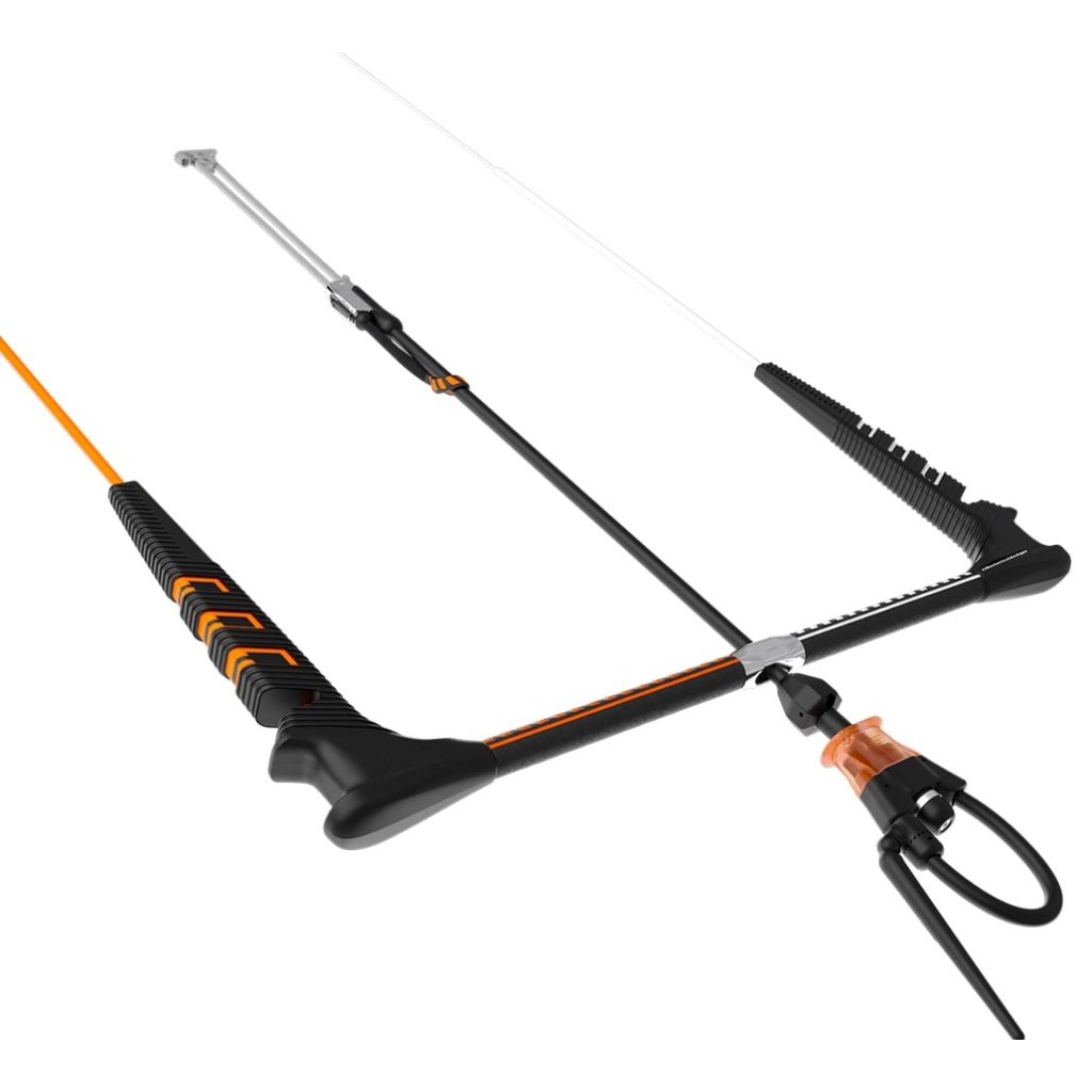 | Moulded floating side caps injected with high memory EVA which facilitates a better bar grip and increased safety. | CNC milled and polished aluminium central bar component with oversized oval recesses to improve de-power tube sliding; even during some extreme steering. | |