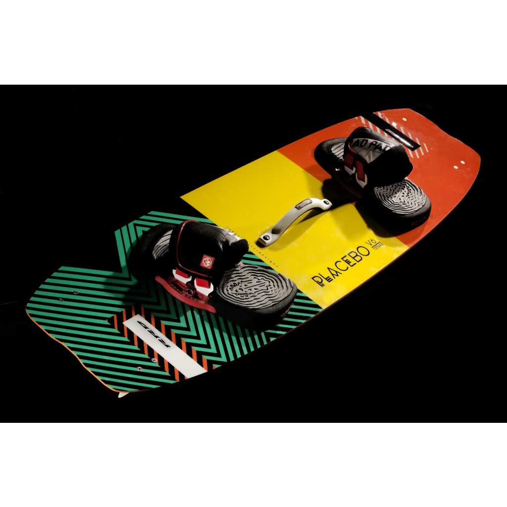 Použitý kiteboard který využíváme na kurzech. Placebo V6, je vlastně referenčním prknem freeridingu a svým pojetím je vhodným a dostupným prknem pro širokou veřejnost, která se chce seznámit s kiteboardingem. Společnosti RRD se ovšem povedlo navrhnout tato prkna tak dobře, že často překvapuje svými vynikajícími vlastnostmi i ostřílené jezdce.