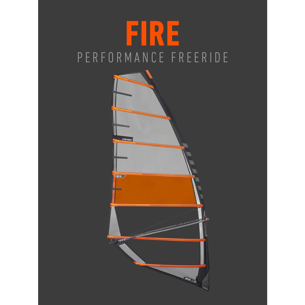 RRD Fire reprezentuje vrchol výkonu v kategorii freeride plachet. Tato dynamická řada plachet je v každé velikosti specificky upravena pro optimální výkon v příslušném větrném rozmezí, což z ní činí v podstatě čtyři řady v jedné. Menší velikosti od 5.0 do 5.7 jsou orientovány na bump and jump s pěti spírami a aktivním pocitem v rukou. Velikosti 6.3 až 6.8 jsou čistě freeride s šesti spírami poskytujícími stabilní a reaktivní rámec, který posouvá vaše windsurfingové dovednosti vpřed. Velikosti 7.2 až 7.6 jsou stroje na freerace bez kembrů, s téměř neomezenou maximální rychlostí a kontrolou. Největší velikosti 7.8 až 9.0 nabízejí fenomenální nízké zrychlení s dvěma kembry v úzkém manžetovém rukávu.
