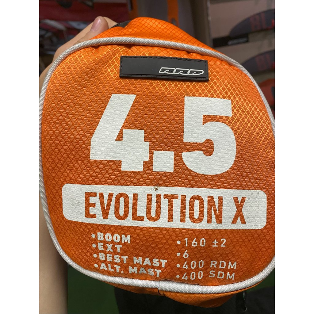 Použitá plachta ve velikosti 4.5m² B stav. Verze X se vyznačuje odolnějším X-Play monofilmem. Evolution byla vyvinutá jednoduše pro to, aby vás vtáhla do ještě vyšší úrovně freeridu. Jedná se o vysoce výkonnou plachtu, která kombinuje znamenité ovládání, výbornou akceleraci spolu s vysokou koncovou rychlostí při přeplachtění.