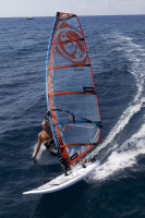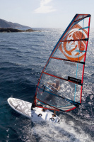 Prkno pro nováčky ve windsurfingu. Čtyři litráže bez středové kačeny. A jedna litráž se středovou kačenou.