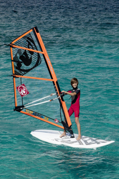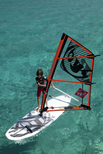 Prkno pro nováčky ve windsurfingu. Čtyři litráže bez středové kačeny. A jedna litráž se středovou kačenou.