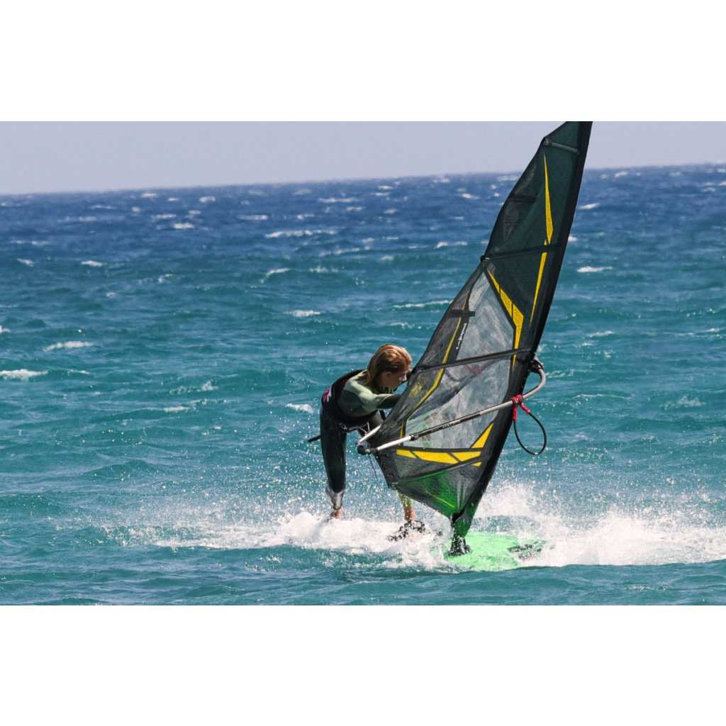 With this sail you can wave ride, freestyle, slalom sail and even foil. Do it all. The foot is cut high for allowing the most radical manoeuvres. The frontal Dacron releases stability for cruising, but at the same time supplies a great pop for freestyling and wave riding drive. A pure mix to allow with a sail to try out all the best disciplines windsurfing can deliver, so that you can develop all skills, to then specialize in what you will love best!