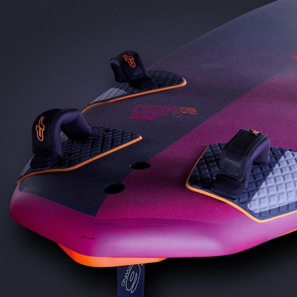 Dvě tail cut-outs pro efektivní release a snadné trimování — maximum rychlosti se stabilitou. Footstrap Scale pro snadnou úpravu velikosti. Více poloh footstrapů pro fin i foil setup.