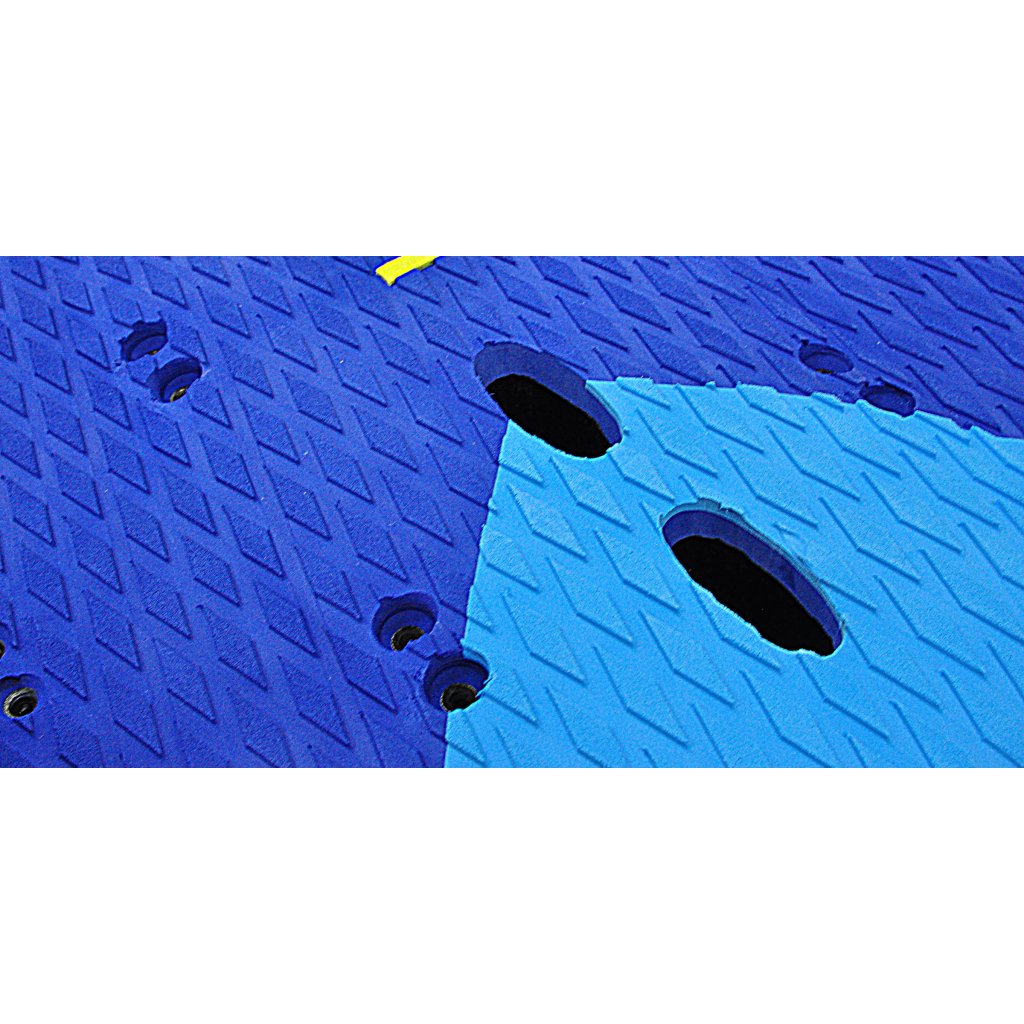 • The flat deck shape is design to have the feet in full contact while the board is railing, volume distribution is design to help foiling with feet in the footstraps