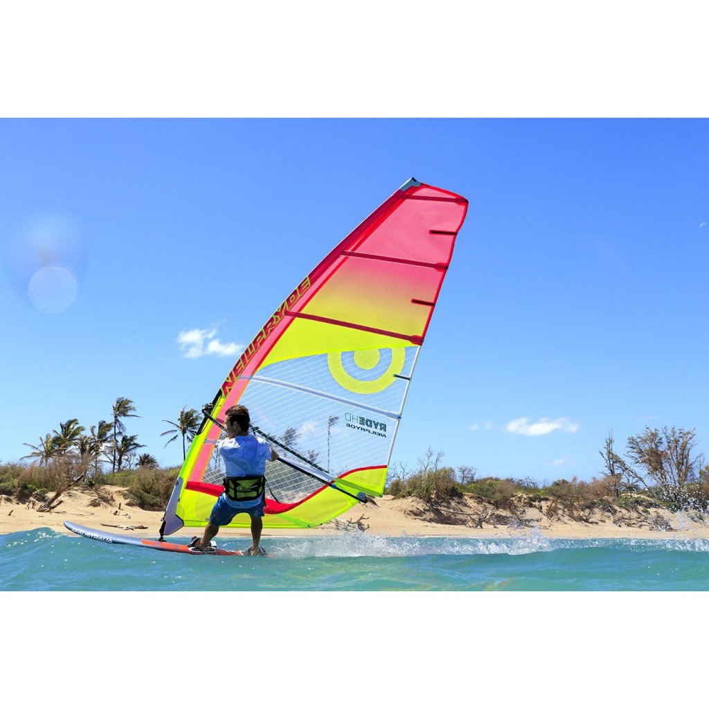 Discover your first planing, jibes and waterstarts, or ride for hours hooked in the harness lines on perfect at waters; the Ryde has been designed to offer great low-end power and stability for early planing and controlled maneuvers. Easy to rig and trim, the Ryde delivers immediate pleasure with no constrains while retains the NeilPryde performance signature feeling. No Stress / Easy Rider Low to medium wind range, not overpowered, easy to rig and trim.