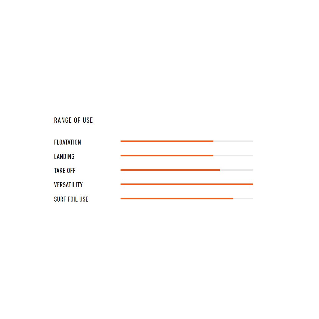 Smaller, lighter, and more versatile. With its compact size, medium high nose, and speed rocker, it provides good surface area for early planning and will get you up on the foil in no time. |
