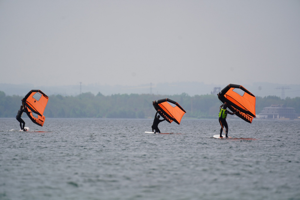 Další úspěšný wingfoilingový kurzík se konal na Berzdorferu see dne 20. května! Účastníkům - Míša, Pavel, Petr, Niki, Eugen, Robert, Míra a Elian - to byl jejich první zážitek s tímto sportem. Všichni účastníci si vedli perfektně a to i přesto, že během kurzů foukal poryvový a nestabilní vítr. Zvláště nás potěšilo, že 5 z 8 účastníků se během kurzu naučilo levitovat!
