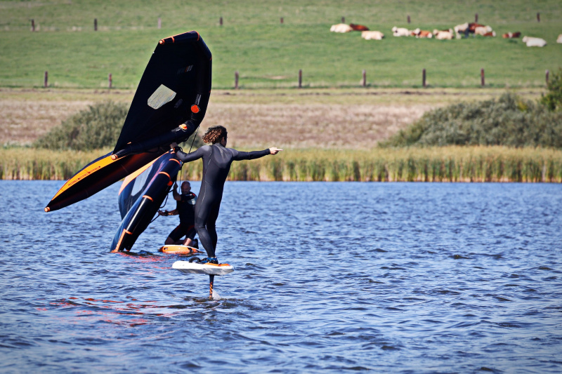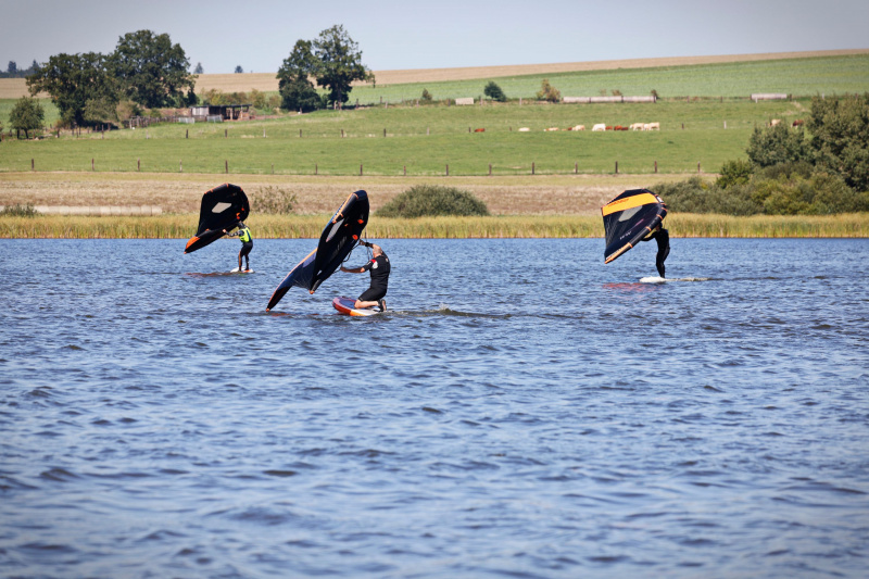 #9 Jezero Labuť 7.9 - Wingfoiling kurz byl speciální tím, že jsme si říkali, že bude pro tři lidi, ale nakonec na vodě bylo tolik "křídel", že to vypadalo, jako bychom byli na startovní čáře závodu!