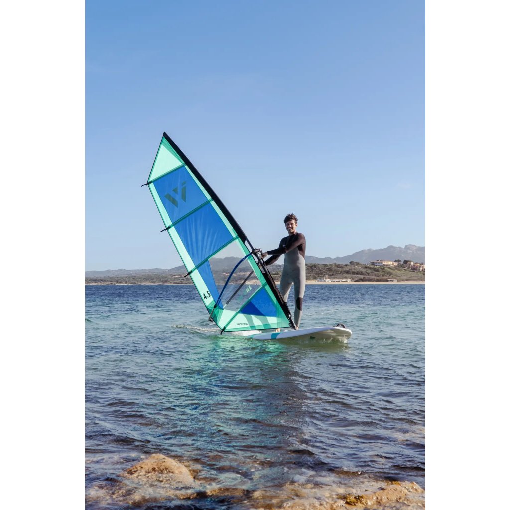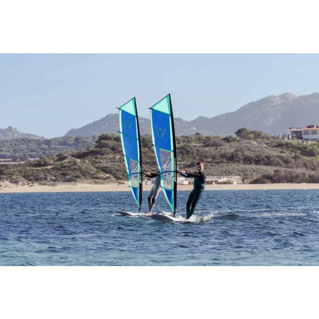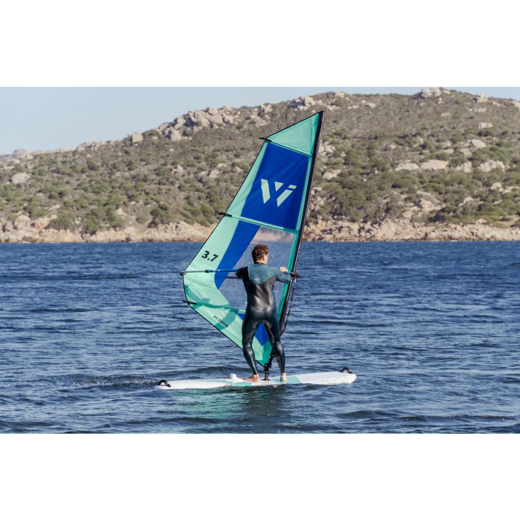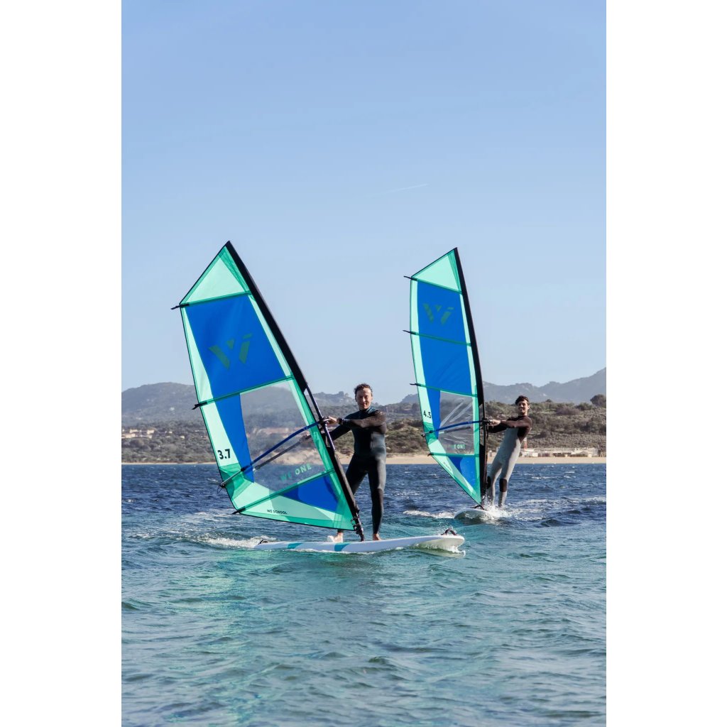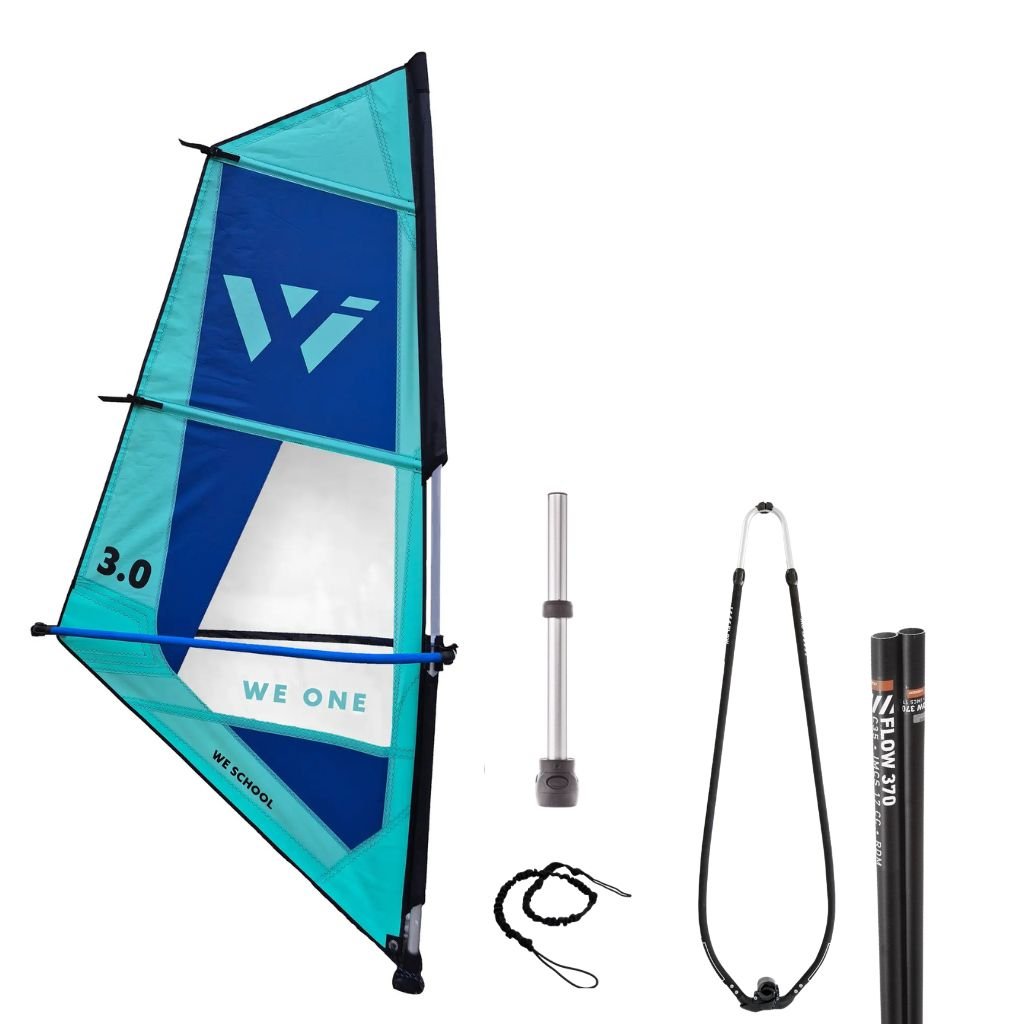 Kompletní začátečnické oplachtění WE ONE — rozbal, nastav a jdi na vodu. Odolný Dacron, hliníkový barevně kódovaný boom, stěžeň, prodloužení, patka a uphaul lano. Vše v jednom balení, nic nechybí.