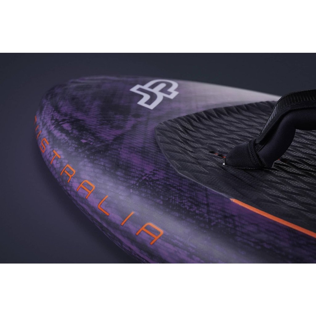 Dlouhý a úzký outline s pulled-in nosem pro nízký swing weight a čistý airflow. Extra tloušťka v nose area pro objem a stabilitu. Slightly concave standing deck pro přímé propojení s foilem. Bottom tail rocker zvedá nos výš — více prostoru pro pop a smoother touchdowny.