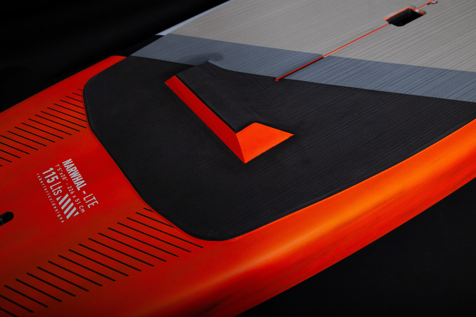 Díky své kompaktní, ale prodloužené délce se Narwhal LTE Y30 rychle zvedá na foil i při nízkých rychlostech a drží hladinu i v ostřejších vlnách. LTE konstrukce z biaxiálních skelných vláken kolem EPS jádra přináší ideální poměr nízké hmotnosti, odolnosti proti nárazům a tuhosti. Dvoubarevná EVA podložka s tisíci vroubky (“Thousand Groove”) vám poskytne maximální grip a komfort po celé délce jízdy, zatímco ultralehká, minimální madla zaručují snadné přenášení desky bez zbytečného navýšení hmotnosti.