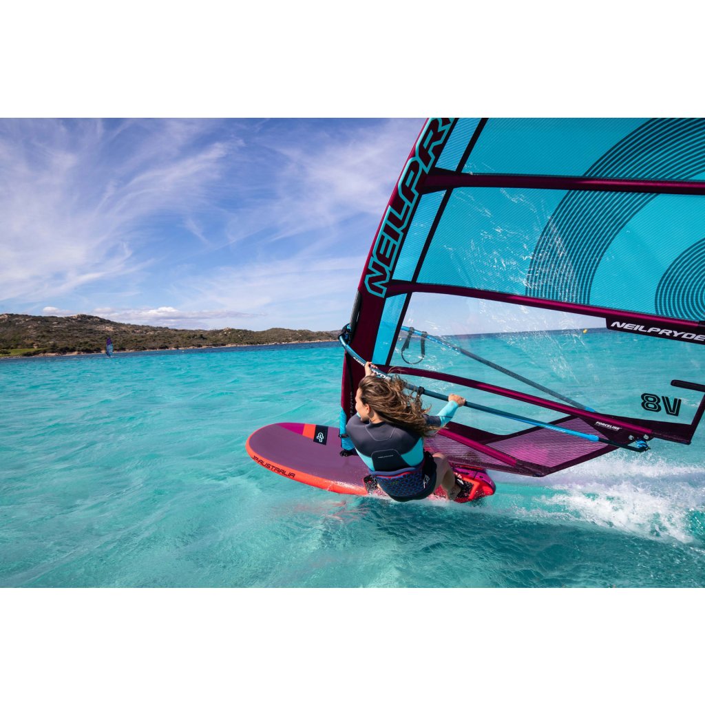 The concave deck lowers the mast base and reduces the swing weight in the nose area. It also allows the rider to hold the rig more upright, which creates more down force to keep the board nicely trimmed on all courses. The deck shape delivers great comfort as the high standing position offers good leverage, creating loads of fin pressure for instant acceleration and top end performance.