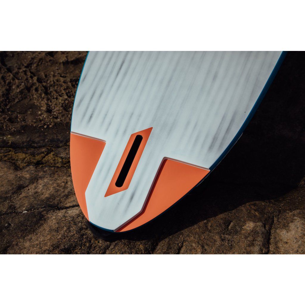Střední část paluby je kolem stožárové dráhy snížená, což výrazně zvyšuje ovladatelnost i v náročných podmínkách. Zahloubení stožárové dráhy a snížení celé platformy vám umožní mít nad prknem maximální kontrolu.