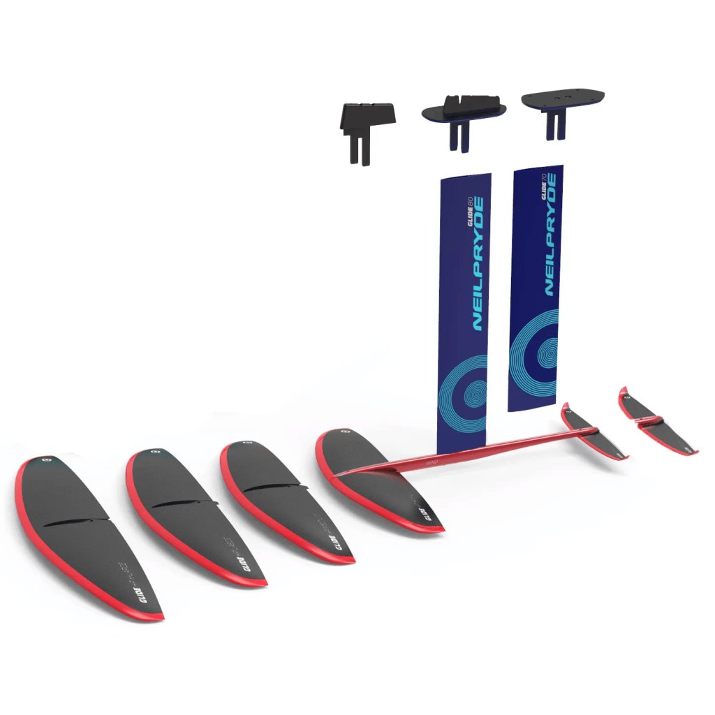 MODULAR SYSTEM GLIDE HP is a fully modular system so you can expand your foil setup by simply adding new wings. Glide HP now offers a range of front wings from 1100cc all the way to 2300cc to cater for every level and size of foiler. Glide Wind comes with a longer fuselage and 80cm mast for windsurf foiling and Glide Surf comes with a shorter, more maneuverable fuselage and a shorter, 70cm mast to be able to access shallower breaks.
