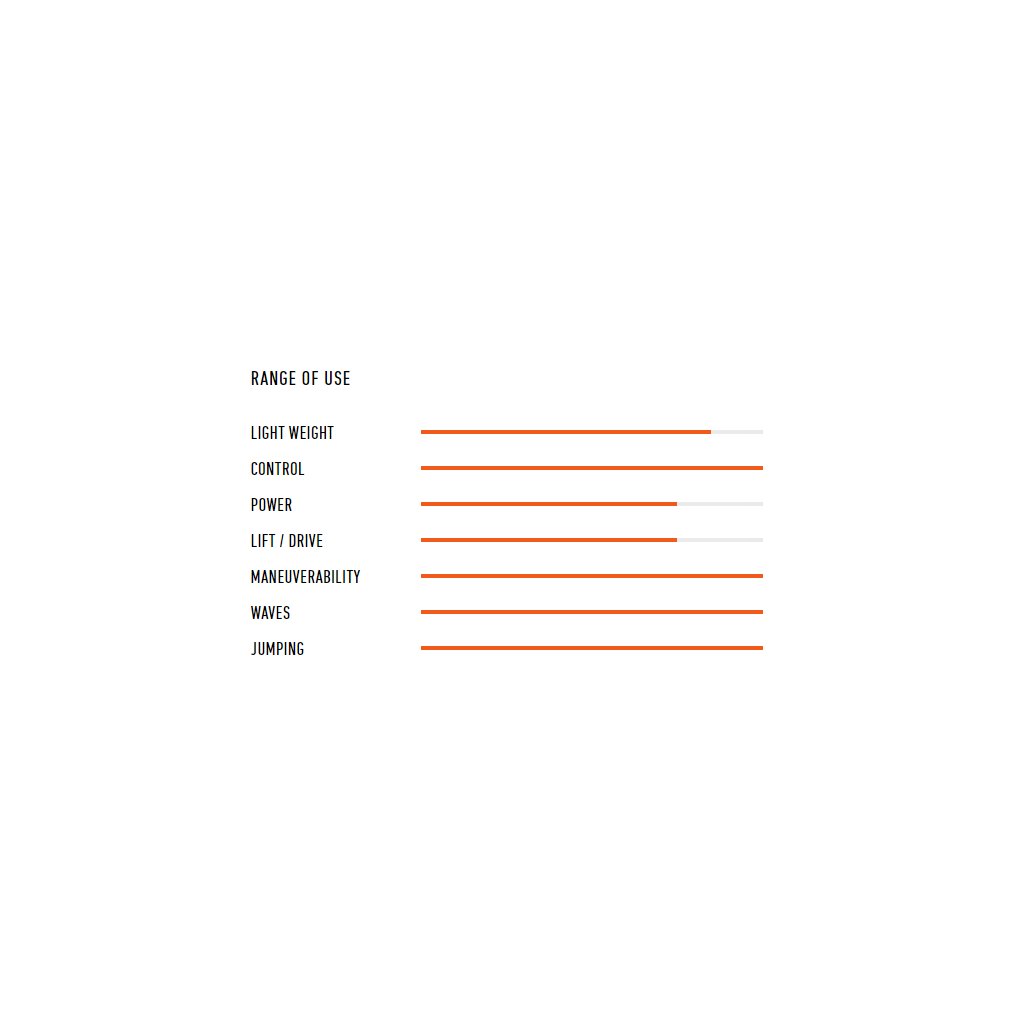- Optimised sail geometry for more support in the top half of the sail, more reaction in the lower part of the sail and better control at the high end.