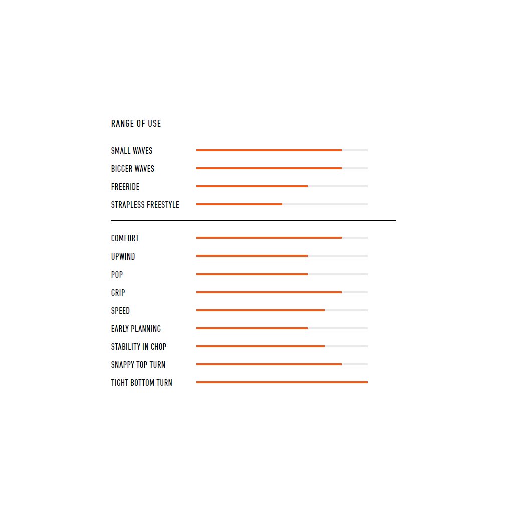 Speed and control, super low profile shape. Strapped in machine yet friendly with all riding styles. Pintall winger tail for early take offs and radical, tight turns.