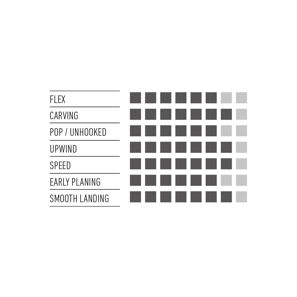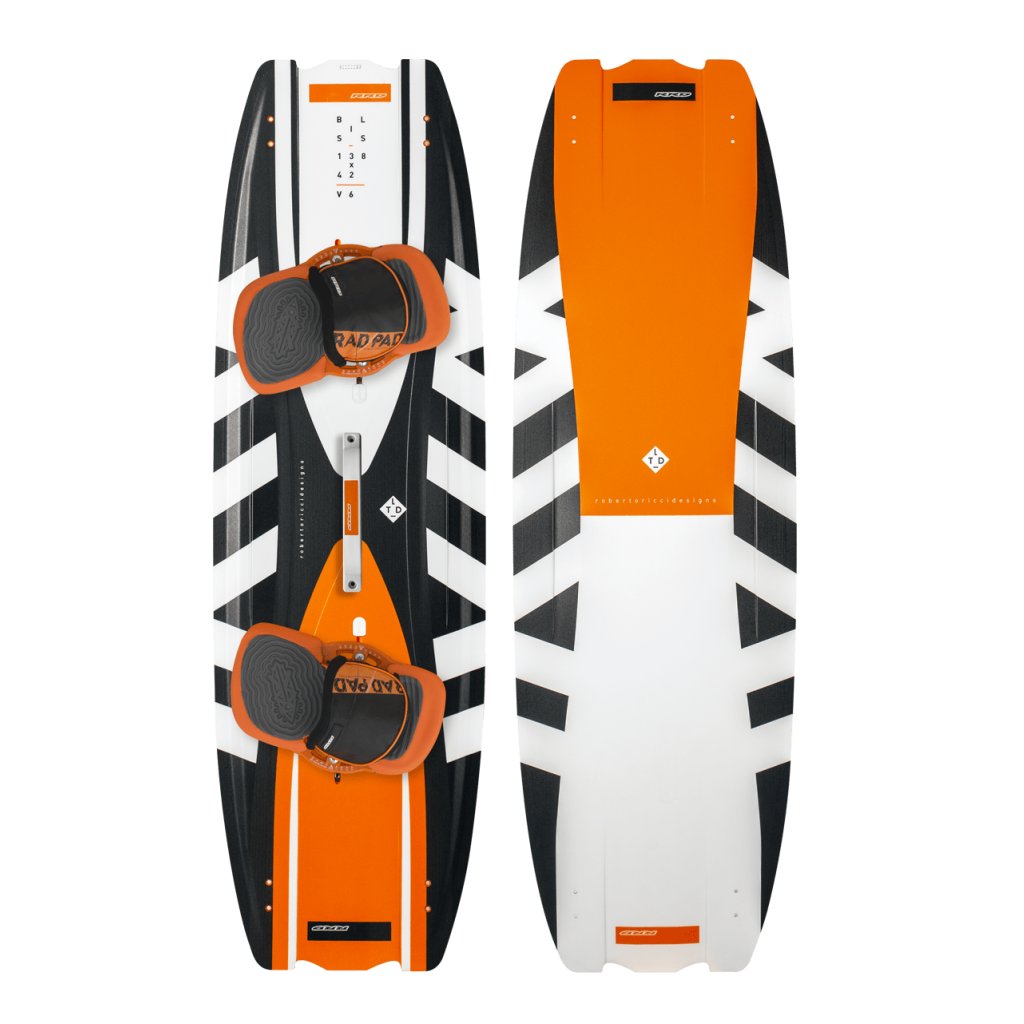 Coming up with the name for this board was easy. Since day one, riding this board has always been an experience of pure “bliss” This progressive freeride/freestyle board provides a fantastic sensation of security while riding in an assortment of conditions. When the board is pushed further into the freestyle realm, it allows this incredible kiteboard to show its true nature. The Bliss has a great amount of speed, comfort, and pop that comes from the mix of medium flex coupled with easy landings. The deep bottom channels and the thin, slightly rounded, ABS sidewalls allow this board to carve aggressively through the chop. The V6 is a light and reliable board, perfect for those choppy spots where going upwind can be a tough task. The tip design and the bottom channels aid the Bliss’ fantastic upwind performance while the track systems for the Rad Pads will allow you to fine tune the stance just the way you like it to achieve maximum comfort. Strap in, load up the lines, and fill your session with true Bliss. |