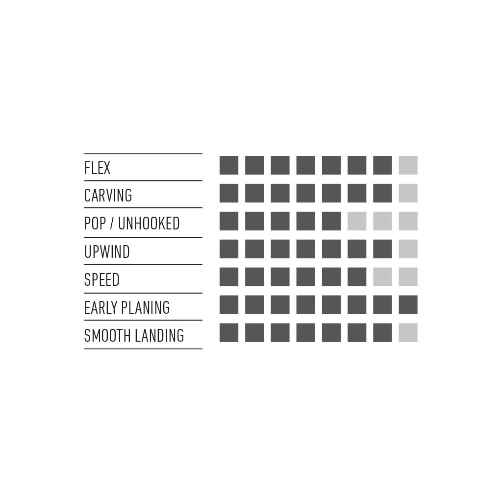 Due to its generous width, length, rocker line, and outline, that is expertly paired with the correct flex and feet response dynamics, the Placebo V7’s forgiving nature creates the perfect mix of comfort, fun, and support on the water. With the new 3D top sheet and thinner rails, this board is now lighter than its previous predecessors, cuts through chop like warm butter, and carves through turns as smooth as silk under your feet. The new Placebo V7 will enable its riders to put in the long hours necessary to accelerate their progress to the next level with comfort and ease. There is no need to hold back when pushing yourself to the next level. The new Placebo has firmly solidified its position as a true progression machine.