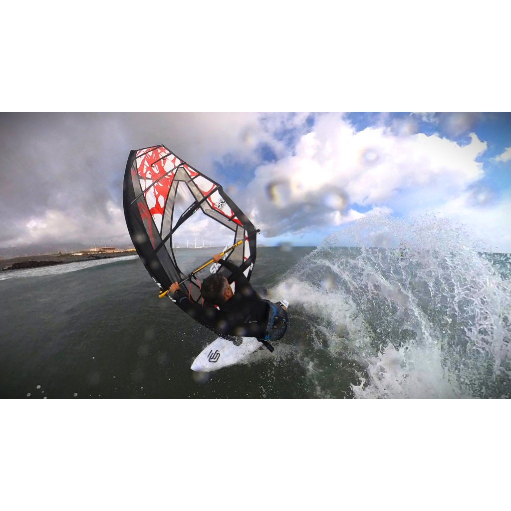 Návětrná strana je záměrně plochá s mělkým draftem – to dává plachtě rychlost pro výšku ve skoku a čistou rotaci. U Q-Bond verze je aerodynamický profil ještě čistší díky absenci švových přesahů – hladší povrch znamená nižší odpor a vyšší efektivitu. Otevřený leich v kombinaci s S-shapingem udržuje prkno nad vodou přes chop. Na vlnách platí: víc rychlosti = vyšší skok, čistší aerial, ostřejší přistání.