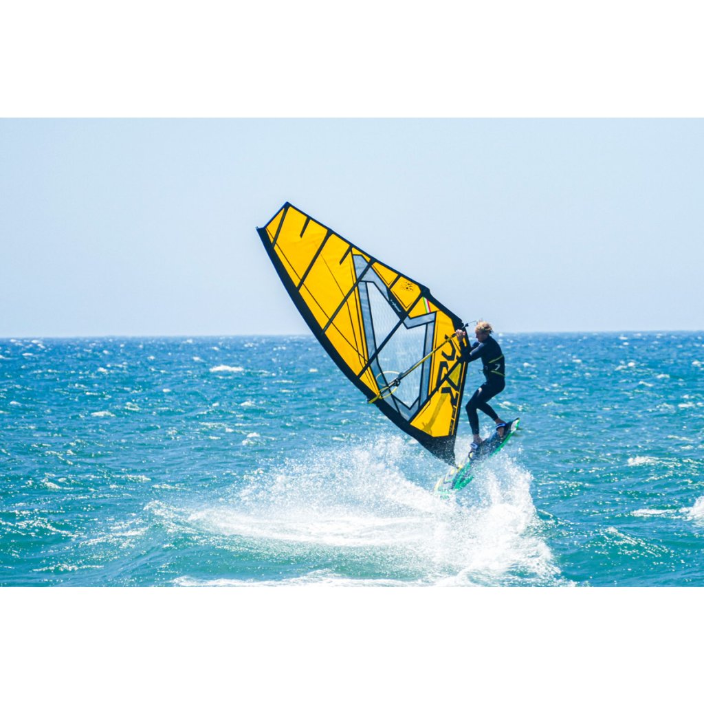 Presented this year in 2 codes. The 832_Black Code with the top part of the sail in 2.5mil Xply, which will deliver a light and forgiving feeling. The 7548_Yellow code with total 4mil Xply on the top part of the sail to have a more reactive and crispy feeling. Both versions are being introduce with the same window construction as the Salt pro. |