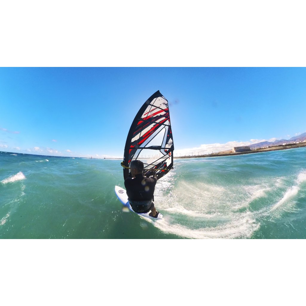SPY nese na závětrné straně plnější a hlubší profil než čistě wave plachta – to je základ jejího přátelského charakteru. Měkčí dacronový luff panel dodává plynulý, stabilní tah do rukou, který vás dostane na plán brzy a bez námahy. Nejhlubší bod profilu sedí pod ráhnem a přenáší vyváženou sílu do prkna a ploutve. Výše se profil zjemňuje do lehčího, neutrálnějšího pocitu – díky tomu jsou přechody a manévry přirozené a plynulé. Výsledek: jistota v poryvech, konstantní rychlost a plachta, která drží, ale nikdy netlačí.