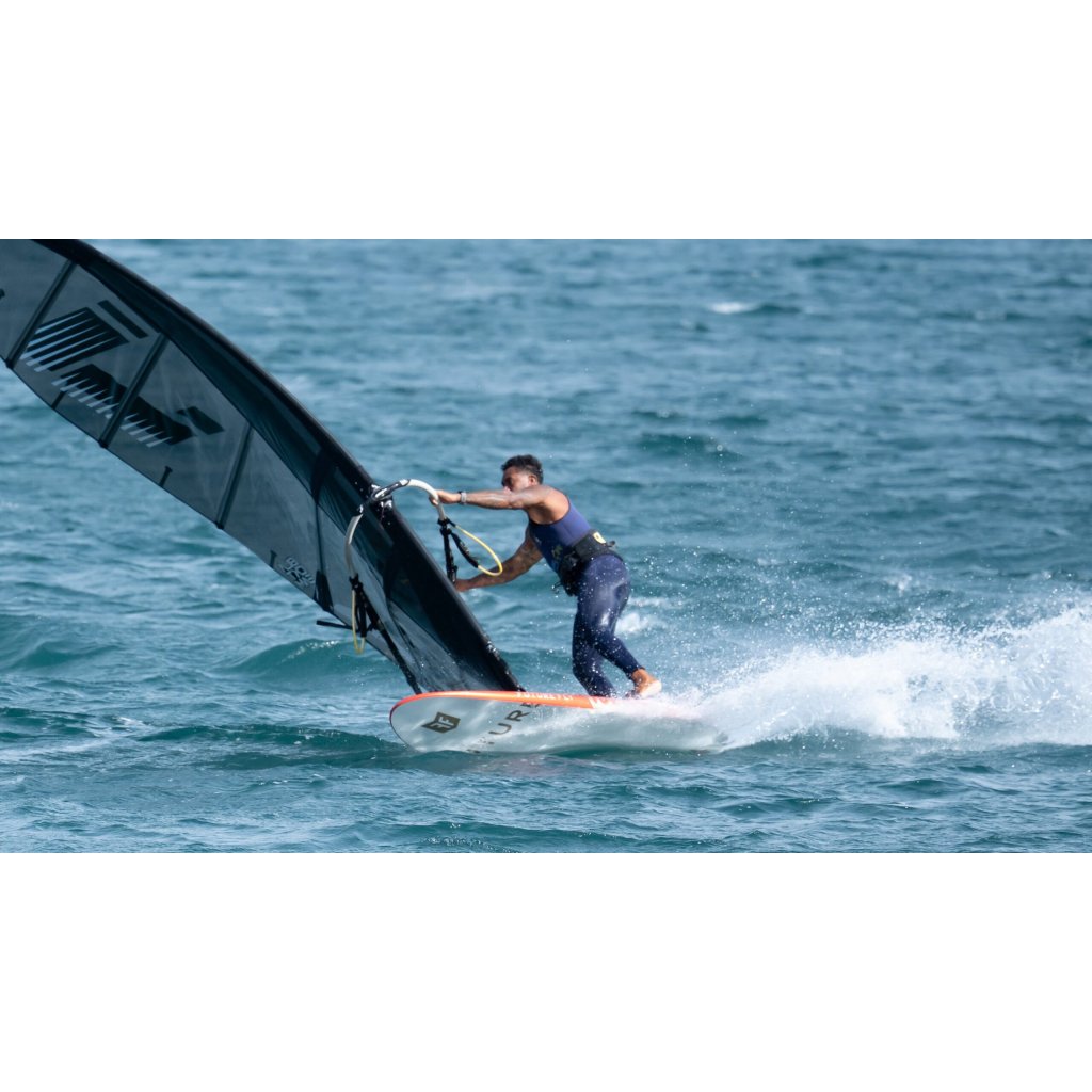 Základ je stejný jako u stitched SLASH – čtyři latě, plochý profil, uzavřený leech, dacronový luff panel, DNA plachty s tituly PWA World Champion a EFPT European Champion. Ale Q-Bond verze posouvá všechno na úroveň, kde se počítají desetiny sekundy a centimetry výšky. V ČR dostupná exkluzivně u Windsurfing Karlín.